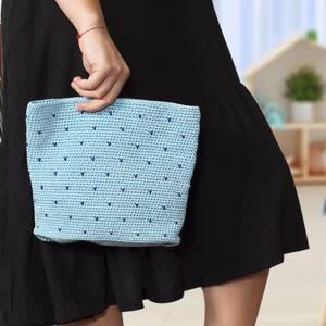 Makrome tekniğiyle yapılmış küçük bir çanta, stilinize şıklık katacaktır. İçine anahtarlar, para ve ayna gibi temel eşyalarınızı rahatça koyabilirsiniz.