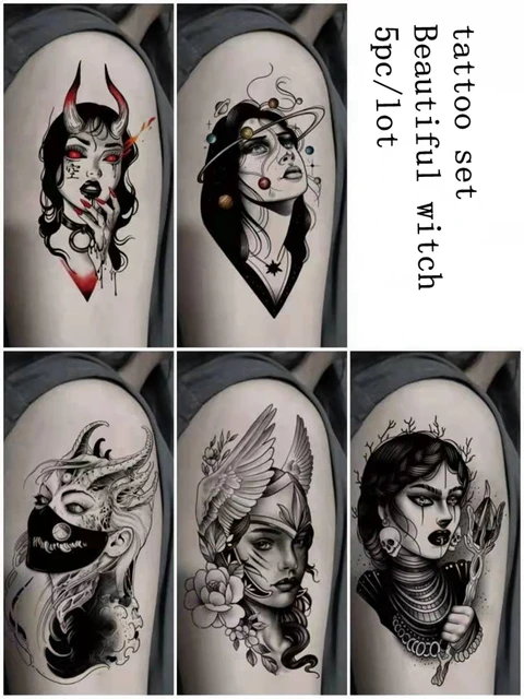 Cadı figürlü dövme, farklı yorumlarla işlenebilir.