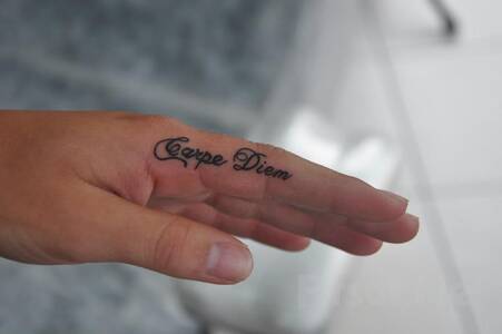 Hayatımız, mutlu ve mutsuz anlarla doludur, ancak her anın kendine has bir değeri vardır. Bu yüzden yaşadığımız günleri pişmanlık ve suçlama duygusu olmadan değerini bilerek yaşamalıyız, geleceğe doğru hızla ilerlerken geçmişe takılmamalıyız. “Carpe diem” yazılı dövme, hayatın bir anlık olduğunu hatırlatan bir hatırlatmadır; bu yüzden her günü son günümüz gibi yaşamak önemlidir.
