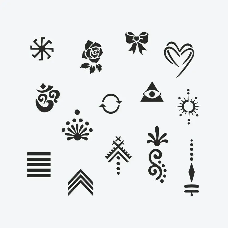 Piyasada farklı tasarımlara sahip çok sayıda şablon bulunmaktadır. Boyutları, stilleri ve diğer özellikleri bakımından çeşitlenirler. Bazıları gerçek dövmeler için kullanılırken, diğerleri mehendi için uygulanmaktadır, ancak hepsi sanatçıların ihtiyaç ve isteklerine cevap verir. Şablonlar, üzerine boya sürülen ve yalnızca vücuda düzgün bir şekilde yerleştirilen, ardından kına veya dövme makinesiyle kullanılan özel kesiklere sahip dokulardır.