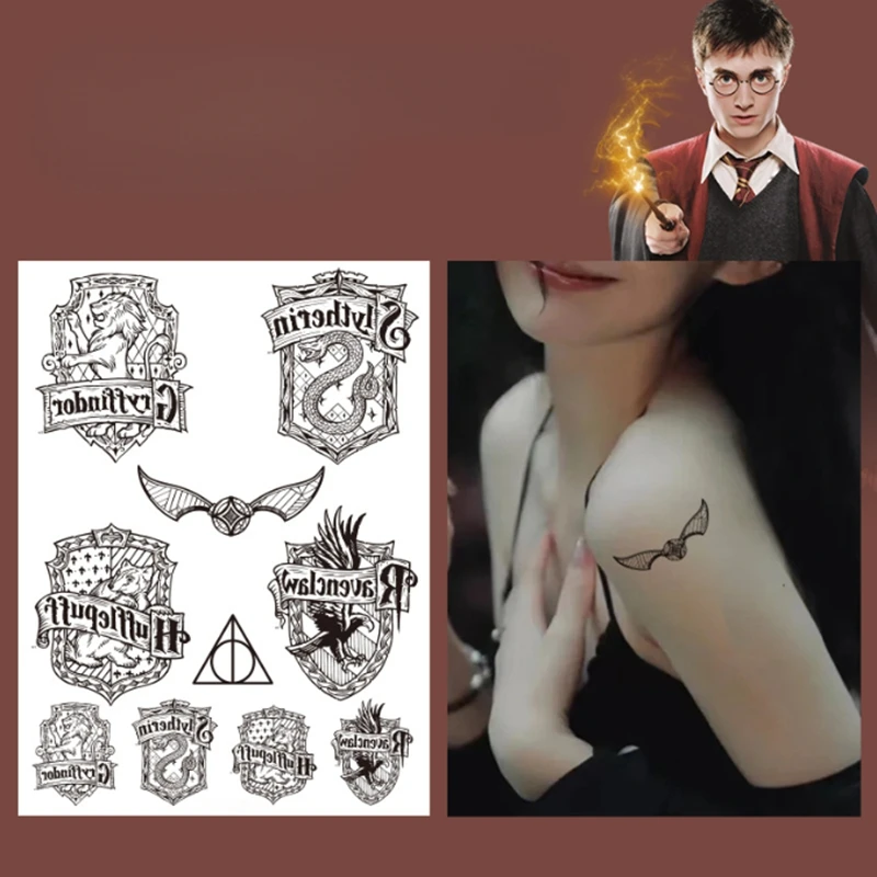 Hogwarts’ın tasvirlerinin dövme olarak kullanılması şaşırtıcı değildir; bu, kalesinin şekilleri veya Gryffindor, Hufflepuff, Ravenclaw ve Slytherin evlerinin sembollerinin bulunduğu armasını içerebilir.