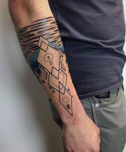 Dikey çizgiler genellikle kol boyunca yerleştirilir. Bu çizgiler, bisepsin dış kısmına uygulanabilir veya dirsekten bileğe kadar uzanabilir. Bu tarz, çoğu zaman üzerinde bir gam bulunan nota çizgilerini tasvir etmek için kullanılır. Avuç içleri de dövmeciler için adeta bir «tuval» görevi görebilir. Burada, ayrı çizgilerin birleşerek karmaşık bir geometrik kompozisyon oluşturduğu tasarımlar yapılabilir. Çoğunlukla bu desenler 3D efektlerle hacimlendirilir.