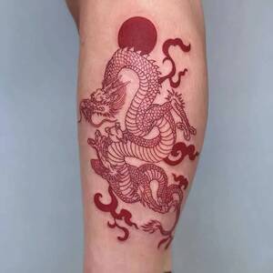Tek renkli bir kırmızı Çin ejderhası tasvir edilen dövme, oldukça sıra dışı bir görünüme sahiptir. Ejderha, tüm kol veya bacak boyunca işlenebilir. Bu tasarım, özellikle kadınlar için mükemmel bir seçenek sunar. Böylesi figürler, son derece zarif ve özenli bir şekilde tasarlanır.