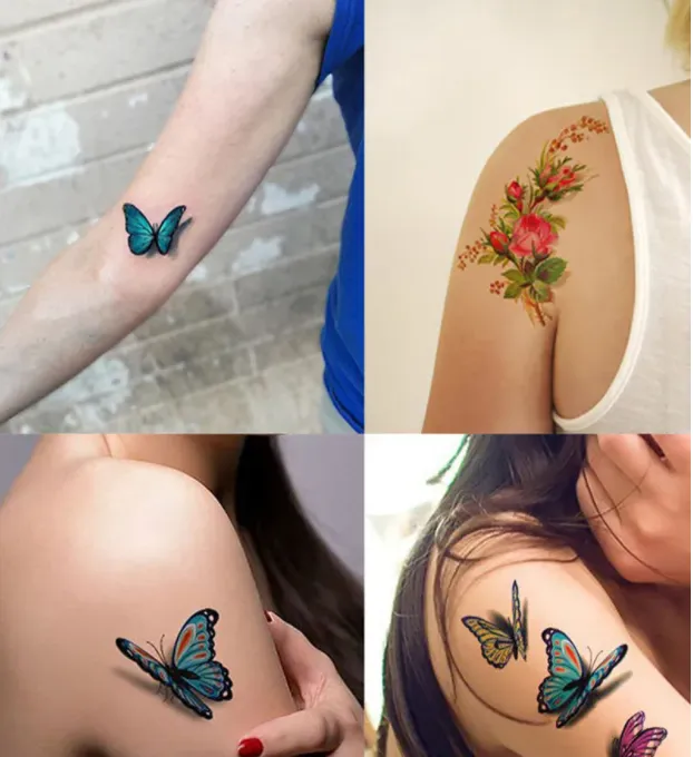 Çiçekler. Çiçek tasarımlı renkli dövmeler çok zarif ve kadınsı görünür. Ancak çiçeğin türüne bağlı olarak dövmenin anlamı değişir. Örneğin, lotus saflığı ve masumiyeti, gelincik yaşam döngüsünü, gül tutku ve güzelliği, şakayık uyum ve düzeni simgeler.