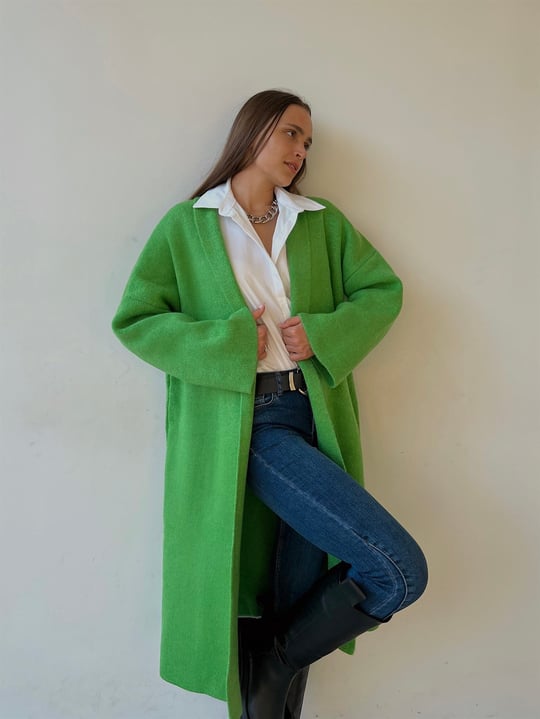 Eğer palto, mont, kaban gibi dış giyim parçaları parlak bir yeşil tonundaysa, aynı renkte başka bir aksesuarla denge sağlamak iyi bir fikirdir. Bu, ayakkabı, çanta, şemsiye veya saç tokası gibi bir parça olabilir. Diğer kıyafet ve aksesuarların daha sade renklerde olması önerilir.