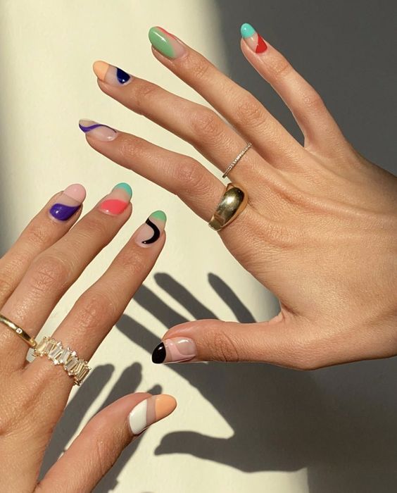 İki renkli manikür, her türlü tırnak şekliyle mükemmel uyum sağlar.