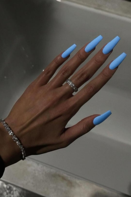 Bu tür manikür, en iyi şekilde koyu tonlarda görünür. Bu stilin avantajlarını vurgulayan en uygun renklerden biri, mavi ve onun açık tonlarıdır.