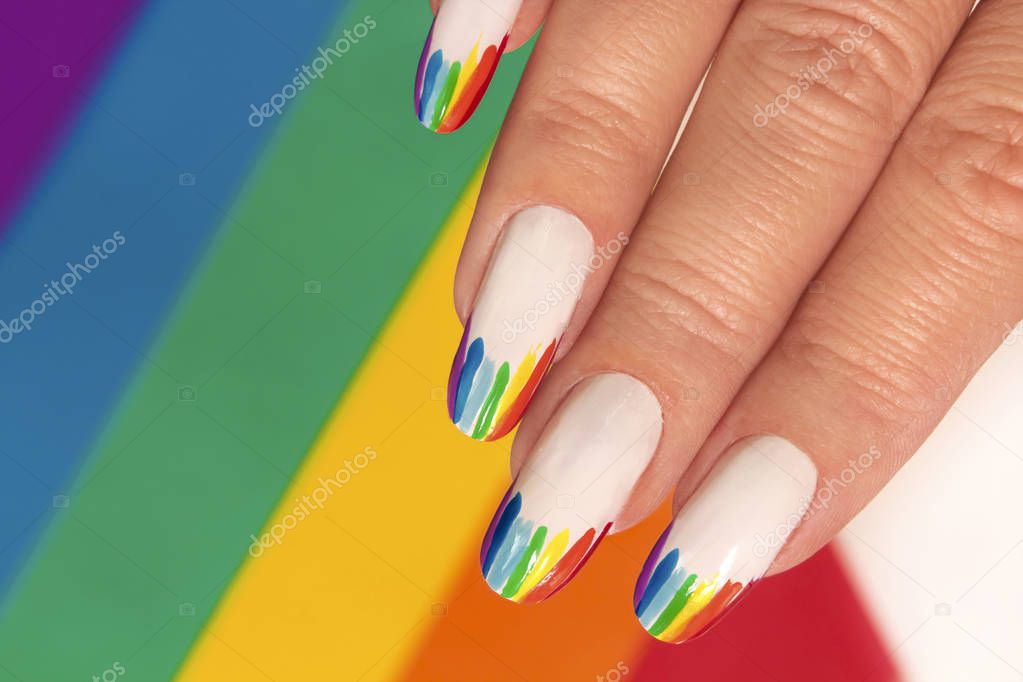 Uzun Tırnaklarda Renkli Fransız Manikürü