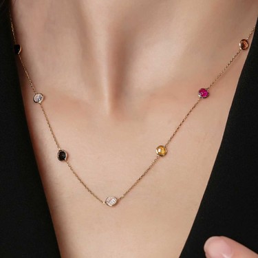 Bugün daha popüler olan seçenekler, choker tarzında yapılan zincirlerdir. Bu zincirler de kısa boyutlarda olup, genellikle şık kolyeler veya orta boyda sarkan figürlerle tamamlanır. Altın detaylar, genellikle pavyelerle süslenmiş zirkon taşlarıyla donatılır, bu da takıya zarafet ve göz alıcı bir hava katar.