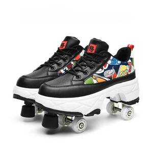 Tekerlekli modeller spor ayakkabılar ve bez ayakkabılar olarak ikiye ayrılır. Bez ayakkabılar çocuklar için daha uygun olup, daha iyi bir denge sağlar. Bu tür ayakkabılar, bisiklete kıyasla yaralanma riskini azaltarak iyi bir alternatif oluşturur.