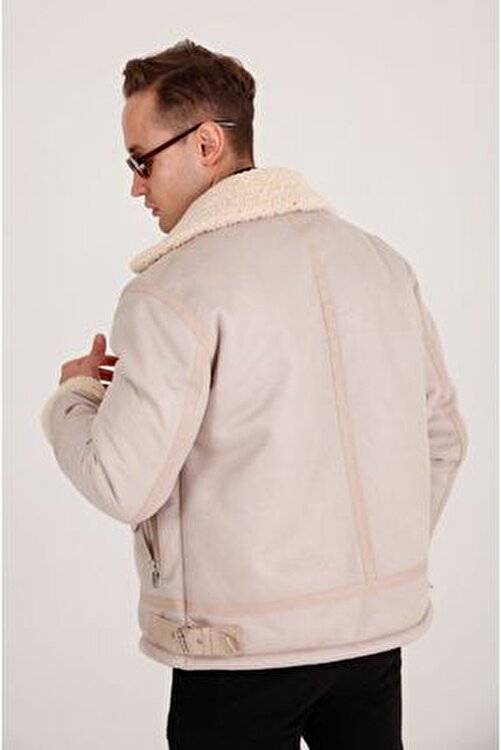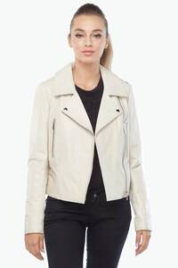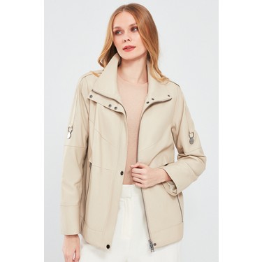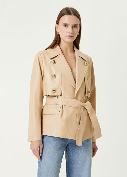 Bej renkli deri ceket, farklı renk seçenekleri ve gardırop unsurlarıyla uyumlu bir şekilde kombinlenebilir. Her tarzda şık ve çekici bir görünüm yaratmanıza yardımcı olur.