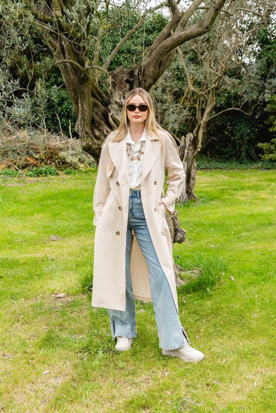 Trençkot, spor ayakkabı tutkunlarının günlük kombinlerine de, yüksek topuklarsız yaşayamayanların stillerine de uyum sağlar. Bu, tamamen işlevsel bir gardırop parçasıdır.
