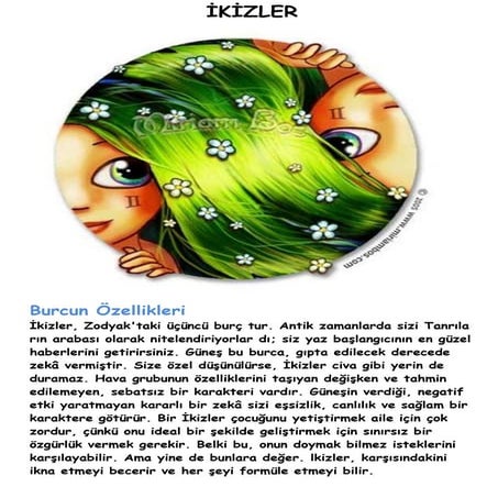 İkizler burcundan doğan bir kadının karakter özelliklerini aşağıda görebilirsiniz.