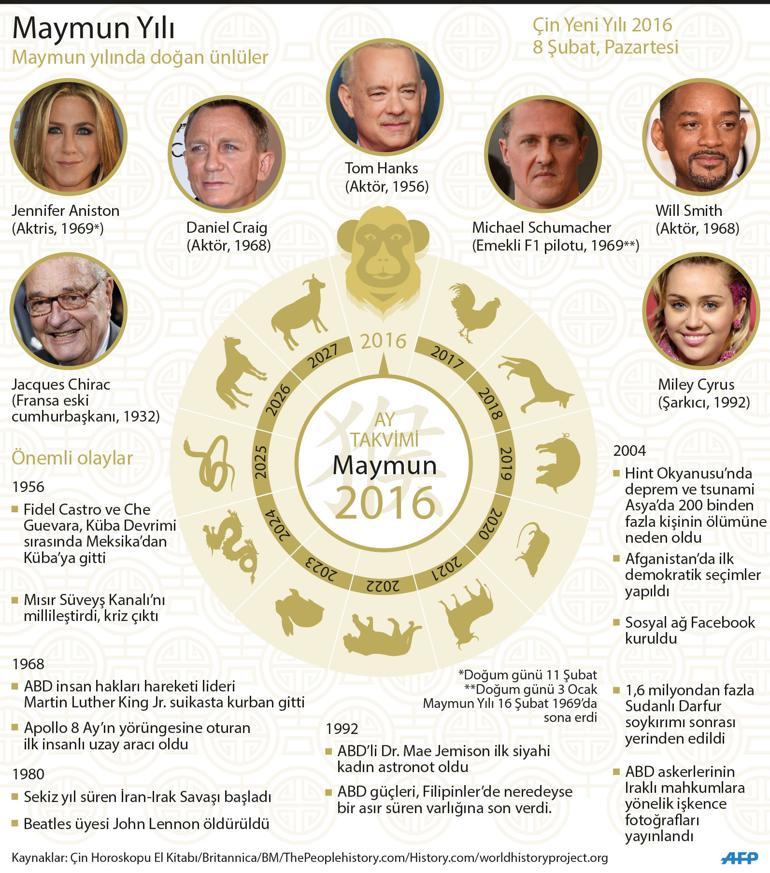 Maymun burcuna, 1944, 1956, 1968, 1980, 1992, 2004, 2016 yıllarında doğanlar dahildir.