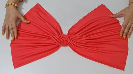 Her şerit, aşağıdaki parametrelerle iki eşit dikdörtgen parçasına bölünür: uzunluk – göğüs çevresinin yarısı, 0,88 ile çarpılarak 4 cm çıkarılır (uzunluğun kısaltılması, kumaşın gerilmesini telafi eder); yükseklik – 12 cm. Buna ek olarak, her iki tarafa 1 cm dikiş payı ve lastik için katlama eklenir.