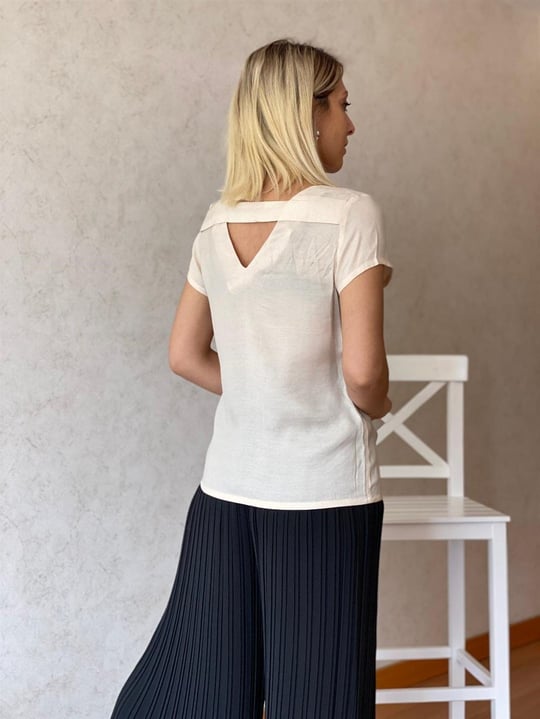 Farklı dokulara sahip birden fazla kumaşın bir arada kullanılması, bluzu ilgi çekici kılabilir.