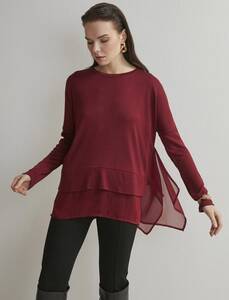 Bluzun arka kısmındaki uzatma detayı, onu eteklerle kombinlemeye engel gibi görünebilir. Ancak durum hiç de böyle değildir. Düz veya dar kesimli bir etek seçildiğinde, son derece şık ve etkileyici bir kombin elde edilir. Bu kombin, sıradanlıktan uzak bir görünüm sunarken aynı zamanda zarif bir stil yaratır.