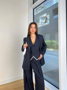 Doğrudan çizgiler sayesinde belinizi şık bir şekilde vurgulayabilirsiniz. Bu, görünümünüzü oldukça zarif yaparak, ceketi rahatlıkla işyerine giymenizi sağlar. Aynı zamanda, bu kombin şehirde yürüyüşler, arkadaş buluşmaları, restorana gitmek, tiyatroya veya kalabalık bir partiye katılmak gibi durumlarda da son derece uygun olacaktır.