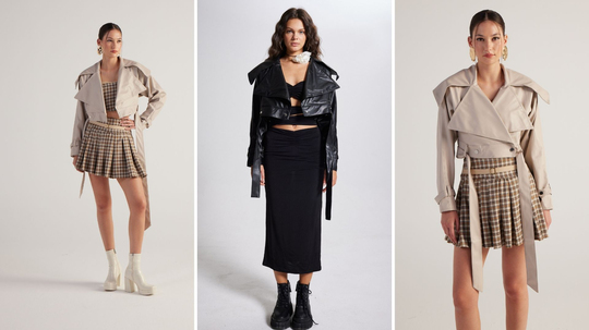 Şifon bir plise etek, moto ceket ile tamamlanabilir, deri etek ise takım kumaşından yapılmış bir ceketle mükemmel uyum sağlar.