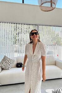 Bej bezelye desenli elbise, hem resmi bir etkinliğe katılmak için, hem de günlük iş hayatında rahatlıkla kullanılabilecek mükemmel bir tercihtir.