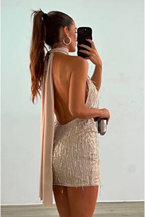 Ten rengi astarlı bir elbise, başka bir inanılmaz derecede çekici etki yaratır.