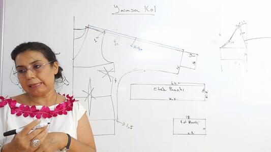 Kalıp üzerinde yaka geniş olacaktır. İstediğiniz gibi modelleyebilir, hatta asimetrik yapabilirsiniz.