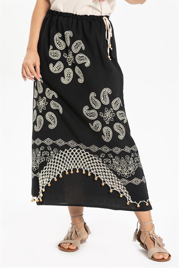 Bu etek, pastel tonlarındaki şifon bluz, dantel üstler ve benzeri parçalarla mükemmel bir şekilde kombinlenebilir.