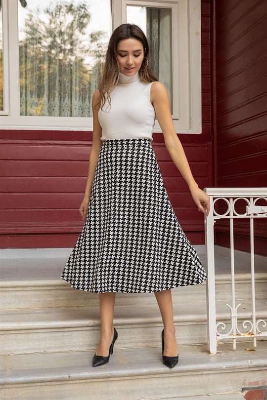 Fazla kilolar, kloş eteklerle mükemmel şekilde gizlenebilir. Bu etekler, dolgun kalçaları kamufle ederken bel hatlarını zarif bir şekilde vurgular. Yılın her mevsiminde giyilebilir, tek yapmanız gereken renkleri ve kumaşları değiştirmek.
