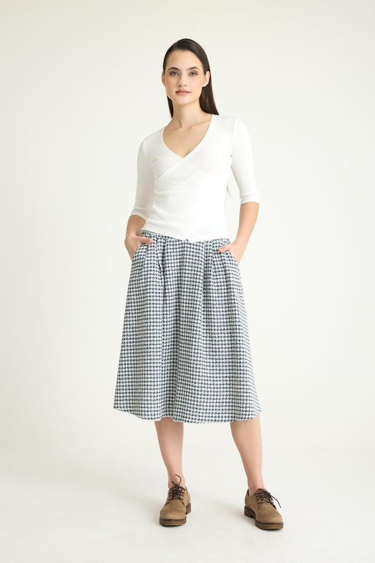 Ürünlerin boyu, diz altı standart midi uzunluğundan şık bir maxi uzunluğuna kadar değişir. Son seçenek özellikle etkileyici görünür. Ayrıca bu etekle vücut hatalarınızı görsel olarak gizleyebilirsiniz – model geniş kalçaları daraltarak siluetinizi uzatır.