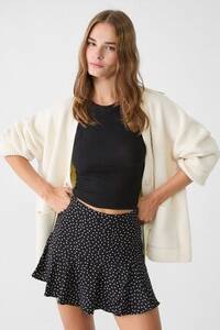 Mini etek, görünümünüze çekicilik ve cazibe katar. Kısa modeller arasında, hem büyük hem de küçük puantiyelerle süslenmiş seçenekler bulunmaktadır. Puantiyeli mini etek, sadece sade tonlardaki üstlerle değil, aynı zamanda canlı renklerle de kombinlenebilir.