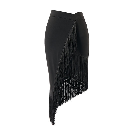 Kırmızı etek, siyah franj ile çok şık bir görünüm oluşturur. Böyle bir kıyafetle beyaz veya siyah bir bluz, tişört ya da top kombinlemek mükemmel bir seçenek olacaktır.