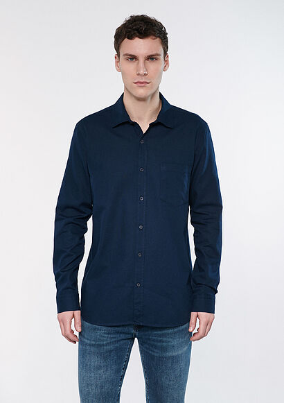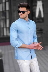 Klasik gömlek modeli, dökümlü yaka, manşetler ve önde düğmeler bulunur. Klasik mavi gömlek, ofis şıklığı için mükemmel bir tercihtir. Ayrıca bu modeli günlük kombinlerinizde, kot pantolonlarla kombinleyerek tercih edebilirsiniz.