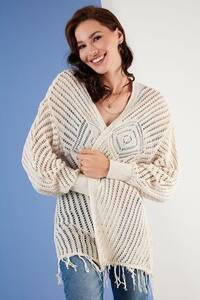 Fazla kilolarınıza rağmen, dantel triko ceket içinde mutlaka çekici görünecek, erkeklerin ilgisini üzerine çekeceksiniz.