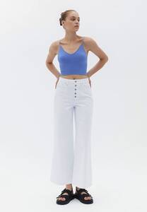 Beyaz kot pantolonlar aşağıdaki parçalarla mükemmel bir uyum sağlar: