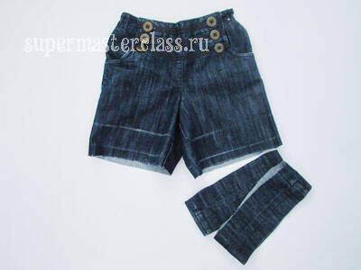 Kotları giydikten sonra, şortun uzunluğunu belirleyin. Ürünün kenarını işlemek için mutlaka 2 cm (çift kat işleme için 4 cm) ekleyin. Kesim hattını, beyaz tebeşir veya normal sabunla çizin.