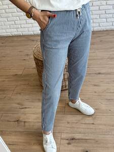 Yürüyüşe çıkmak veya akşam çıkışı için, örneğin mavi renkteki çizgili skinny veya bol kesim pantolonlar mükemmel bir seçenek olacaktır. Üst olarak beyaz bir tişört veya pantolon içine sokulabilen bir top tercih edebilirsiniz. Eğer bol kesim veya tunik tercih ediyorsanız, üstü dışarıda bırakmak, görünümü daha rahat ve şık hale getirecektir.