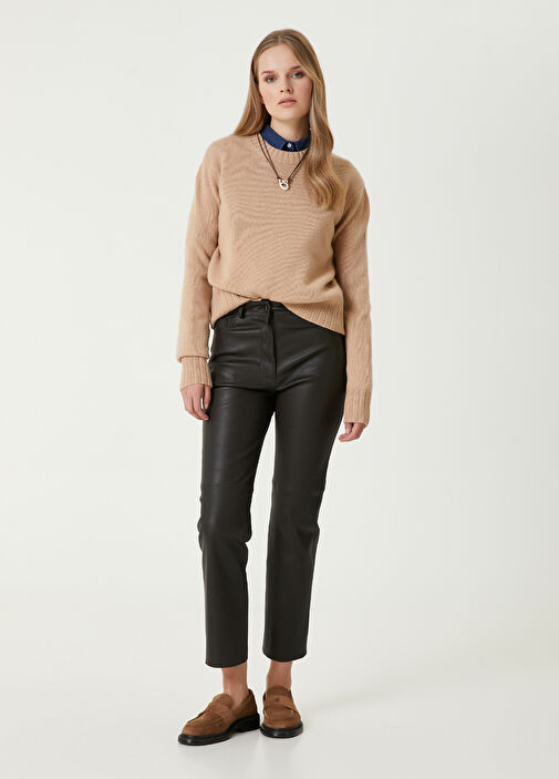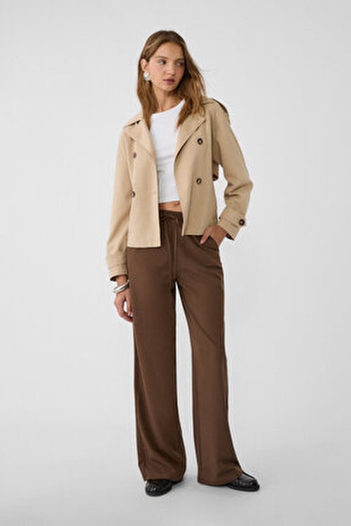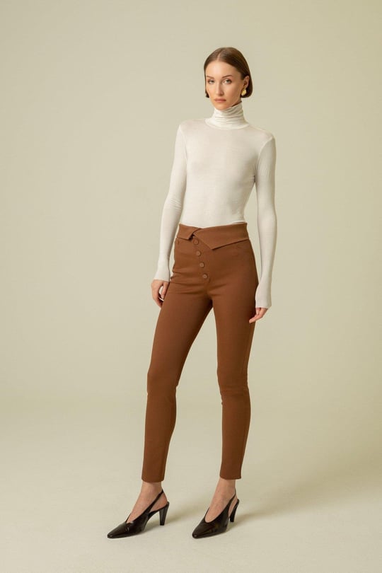Kahverengi pantolonlar, ofis için siyah pantolon gibi temel bir öğeye alternatif olarak mükemmel bir seçenektir. Düz kesim veya pileli bol paça pantolonlar tercih edilmelidir. Bu pantolonlara gri, siyah veya kül tonlarında klasik bir gömlek ya da bluz kombine edilebilir. Üst olarak dar kesim bir kazak da iyi bir seçenek olacaktır.