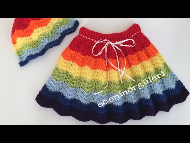 Çocuk için örülen zigzag desenli etek hazır!