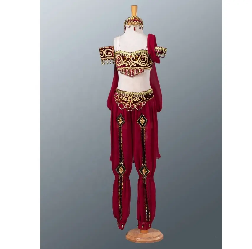 Stil, kıyafetlerde belirgin keskin hatlar ve geometrik desenlerle tanınır. Avrupa elbiselerinin aksine, Arap kıyafetleri daha kapalıdır, dekolte ve kısa etekler yoktur. Bunlar, ipek, brokar, şifon, saten ve kadife gibi hafif, hava alan kumaşlardan dikilir. Kadın kıyafetlerinin kesimleri rahat ve özgürdür: yürüme sırasında hareketi kısıtlamaz ve kadının doğal zarafetini vurgular.