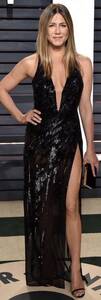 Aniston genellikle sade kesim elbiseler tercih ediyor. Elbiseleri çoğunlukla beyaz veya krem renginde oluyor – bu kesimler ve renkler, doğal güzelliğini daha fazla ön plana çıkarıyor.