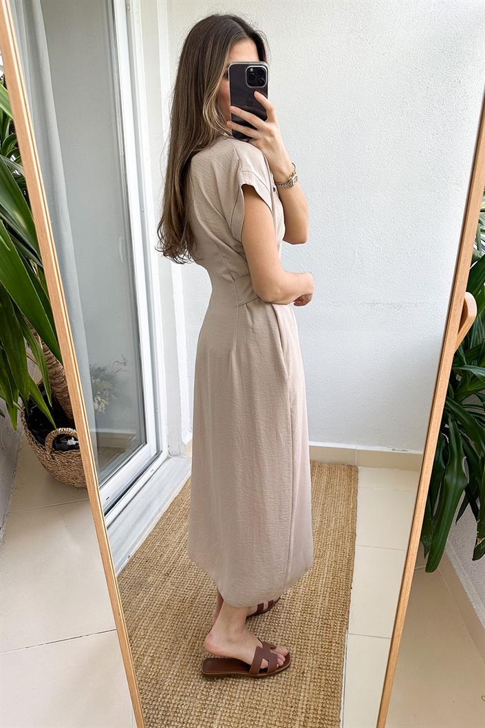 Eğer romantik bir hava isteniyorsa, bu elbise ince topuklu zarif ayakkabılarla tamamlanabilir ve aksesuarlar olarak değerli metallerden yapılmış takılar tercih edilebilir.