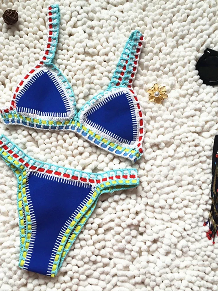 Farklı renk ipliklerinden örülmüş mayolar, özgün bir seçenek olabilir. Bu, eğlenceli çizgili modeller, melanj ya da renkli desenler olabilir.